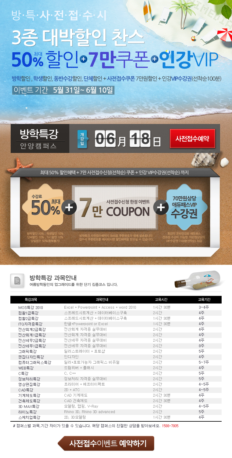[방학특강]방학특강 사전접수 이벤트 안내!!