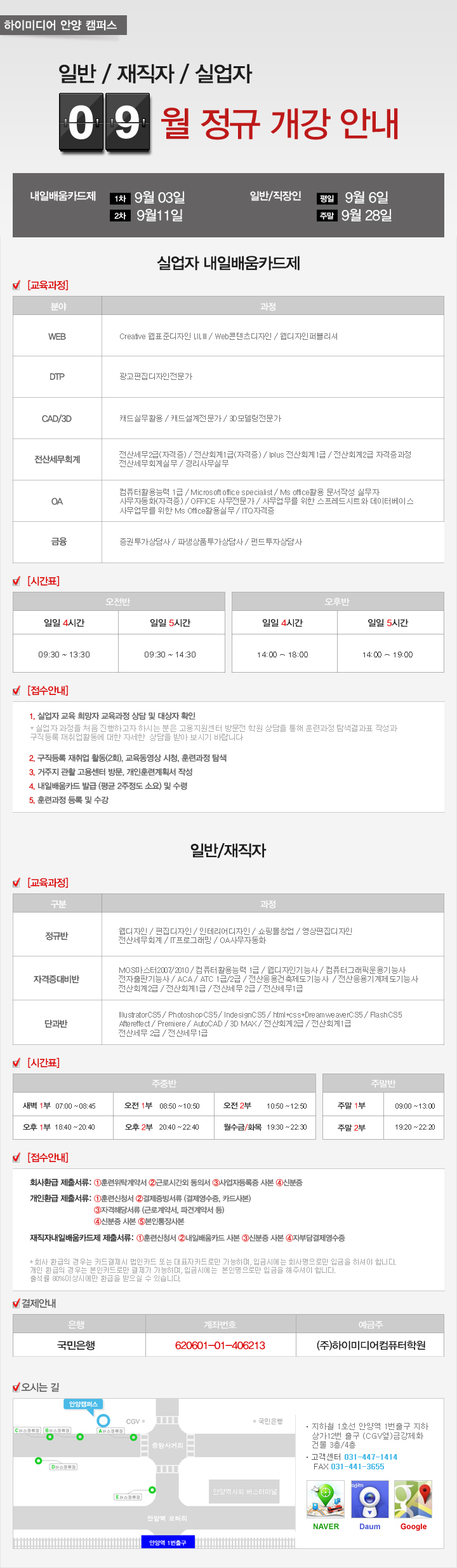 9월 개강일정 안내입니다.
