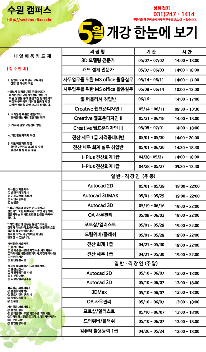 5월 개강 한눈에 보기